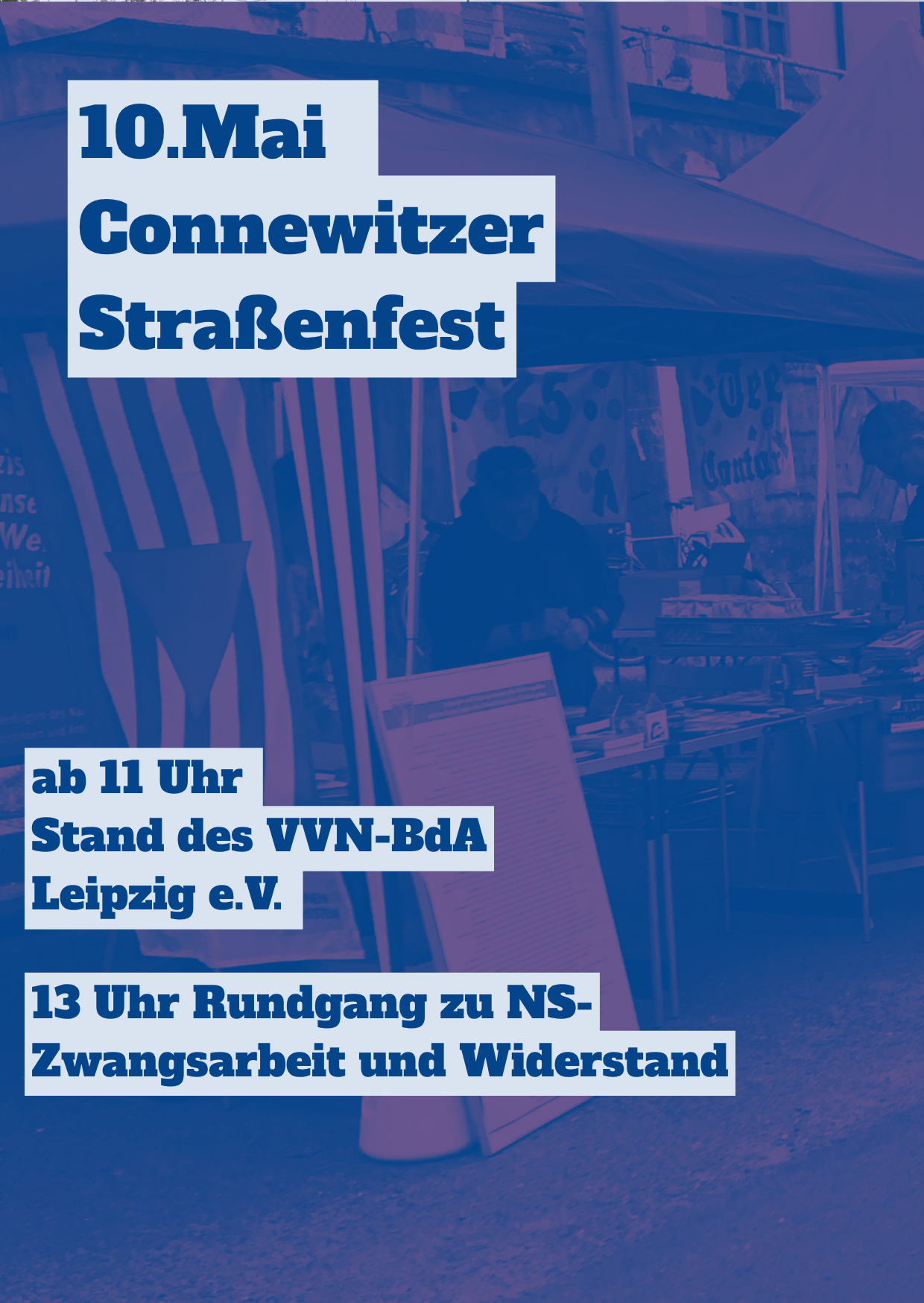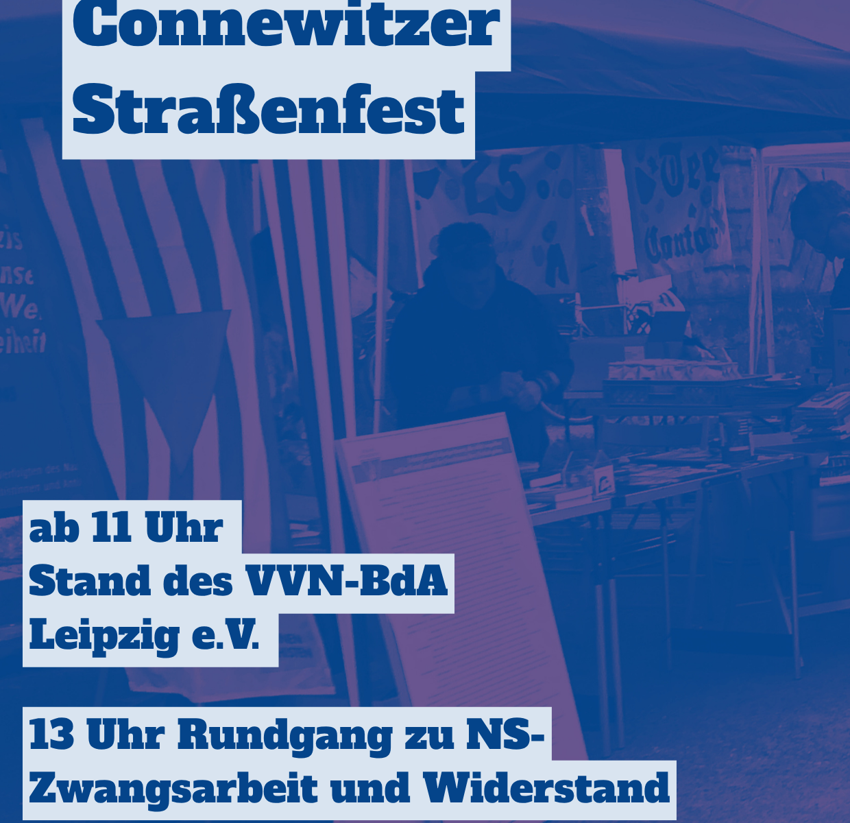 Um 13 Uhr beginnt an unserem Stand ein Rundgang zu NS-Zwangsarbeit und Widerstand in Connewitz.