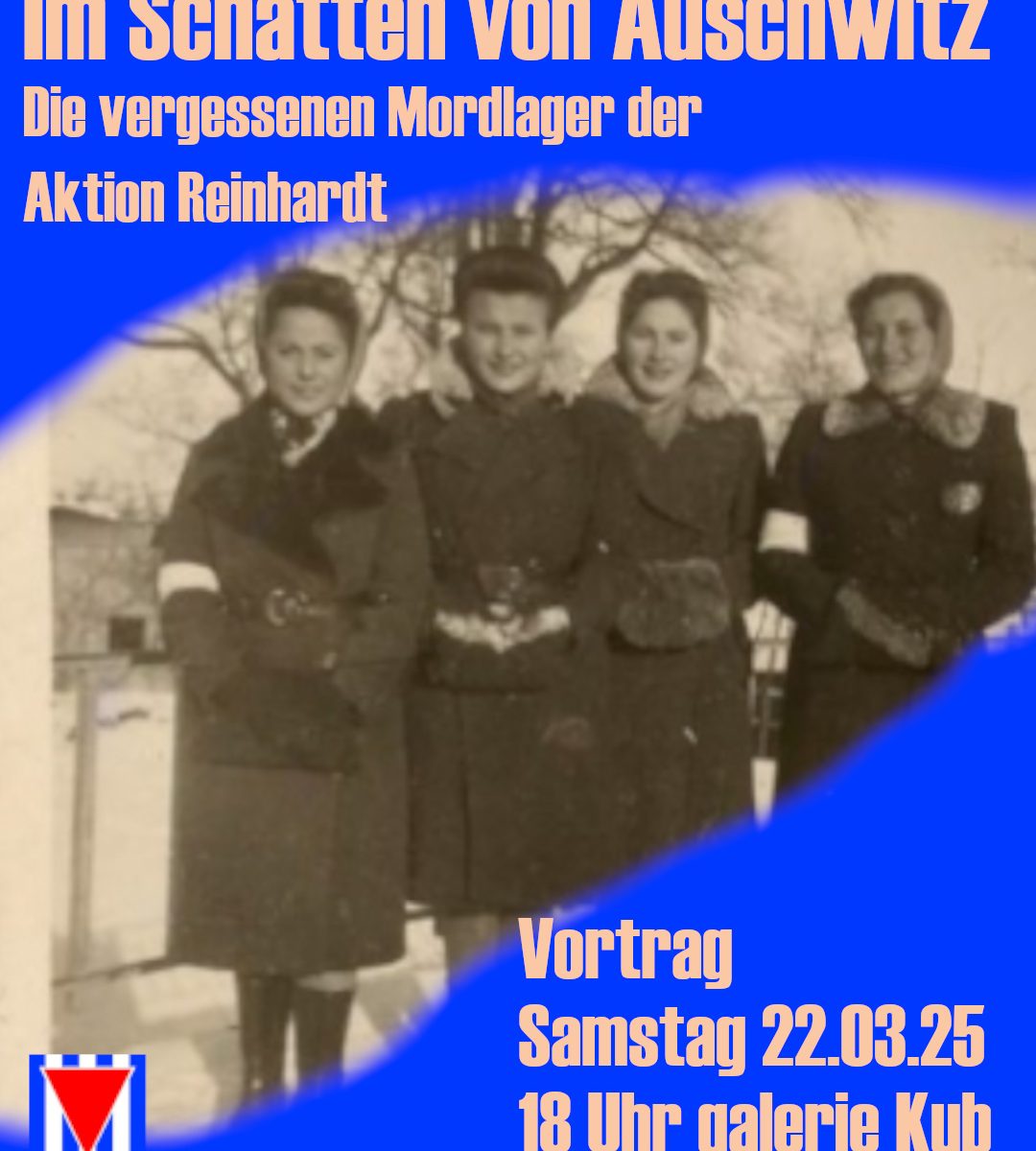 Der Vortrag von Dr. Steffen Hänschen (Mitarbeiter des Bildungswerks Stanislaw Hantz) thematisiert die Geschichte und Organisation der Vernichtung der europäischen Jüdinnen und Juden im Rahmen der „Aktion Reinhardt“. Vom Herbst 1941 bis Sommer 1942 wurden über 90 Mitarbeiter der „T4“- Zentrale in Berlin in die von den Deutschen besetzten Ostgebiete geschickt. Sie waren die personelle Basis der so genannten „Aktion Reinhardt“ 1942/1943. Diese Aktion wurde noch vor der Wannsee-Konferenz von Heinrich Himmler beschlossen und hatte zur Folge, dass in den drei Vernichtungslagern Belzec, Sobibor und Treblinka mindestens 1,8 Millionen Menschen ermordet wurden – zum größten Teil Juden und Jüdinnen, darunter aber auch 50.000 Sinti*zze und Rom*nja. Die Organisation und Verbrechen der „Aktion Reinhardt“ und die Geschichte der Gedenkstätten sind Schwerpunkte des Vortrages.