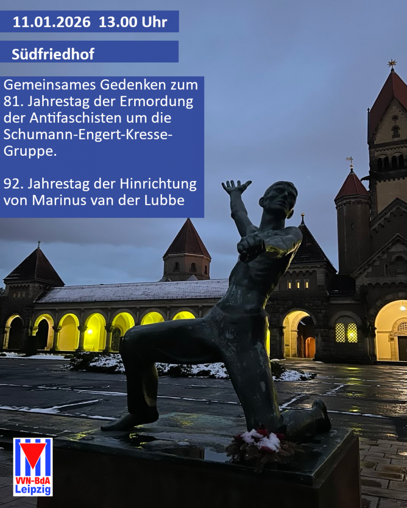 Am 11. und 12. Januar jährt sich die Ermordung von zehn Antifaschisten aus Leipzig, die in der Hinrichtungsstätte Münchner Platz in Dresden in diesen Tagen vor 81 Jahren hingerichtet wurden.